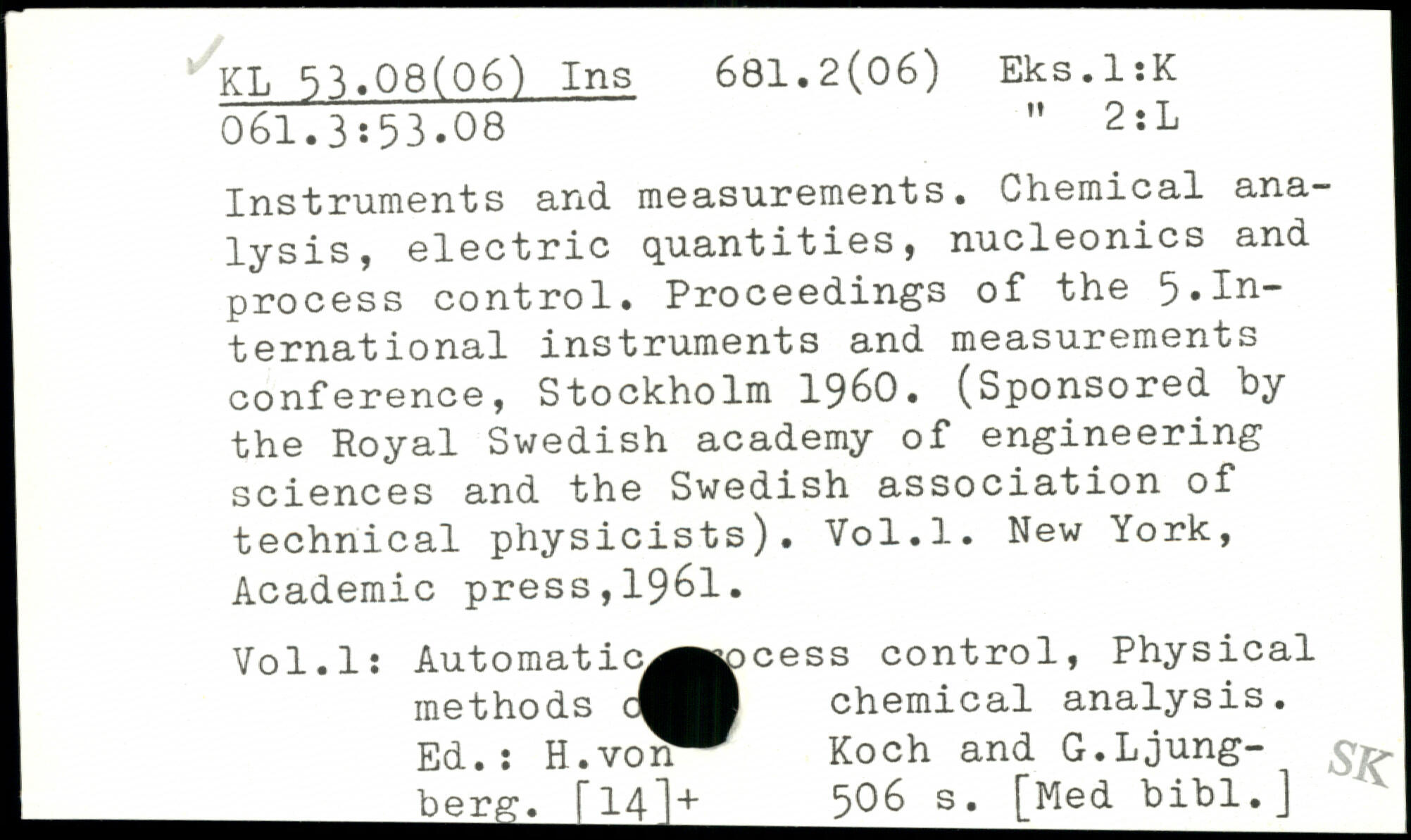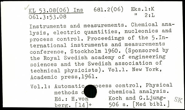 Instruments and measurements. Chemical analysis, electric quantities, nucleonics and process control. Proceedings of the 5.In~ \ ternational instruments and measurements j conference