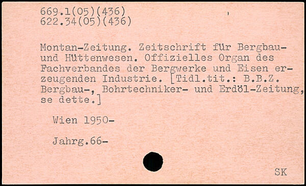 Montan-Zeitung. Zeitschrift für Berghau-und Hüttenwesen. Offizielles Organ des Fachverbandes der Bergwerke und Eisen erzeugenden Industrie. [Tidl.tit.: B.B.Z. Bergbau-, Bohrtechniker- und Erd.öl-Zeitung, se dette.]