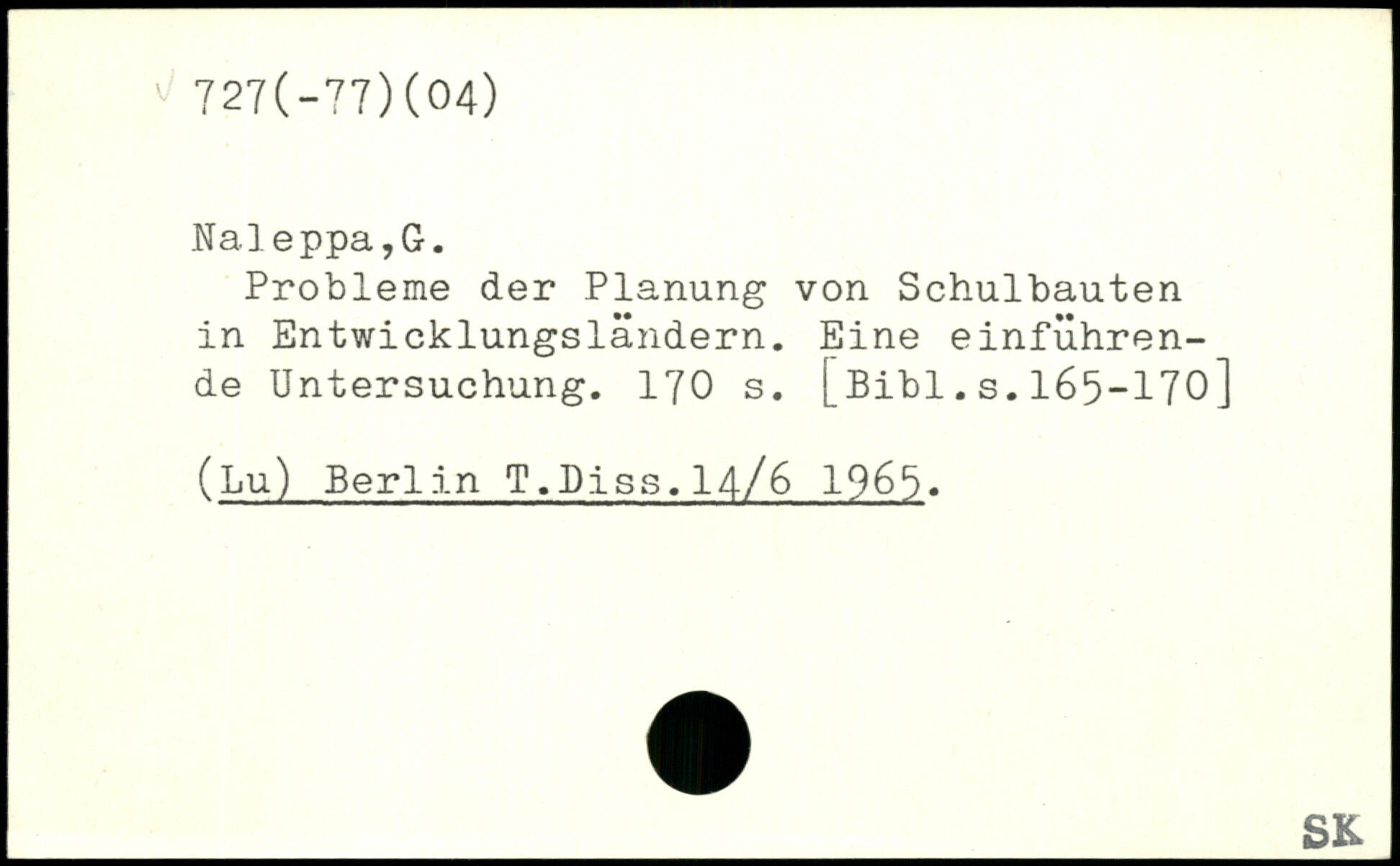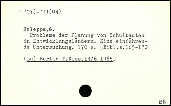 Probleme der Planung von Schulbauten in Entwicklungsländern. Eine einführende Untersuchung.