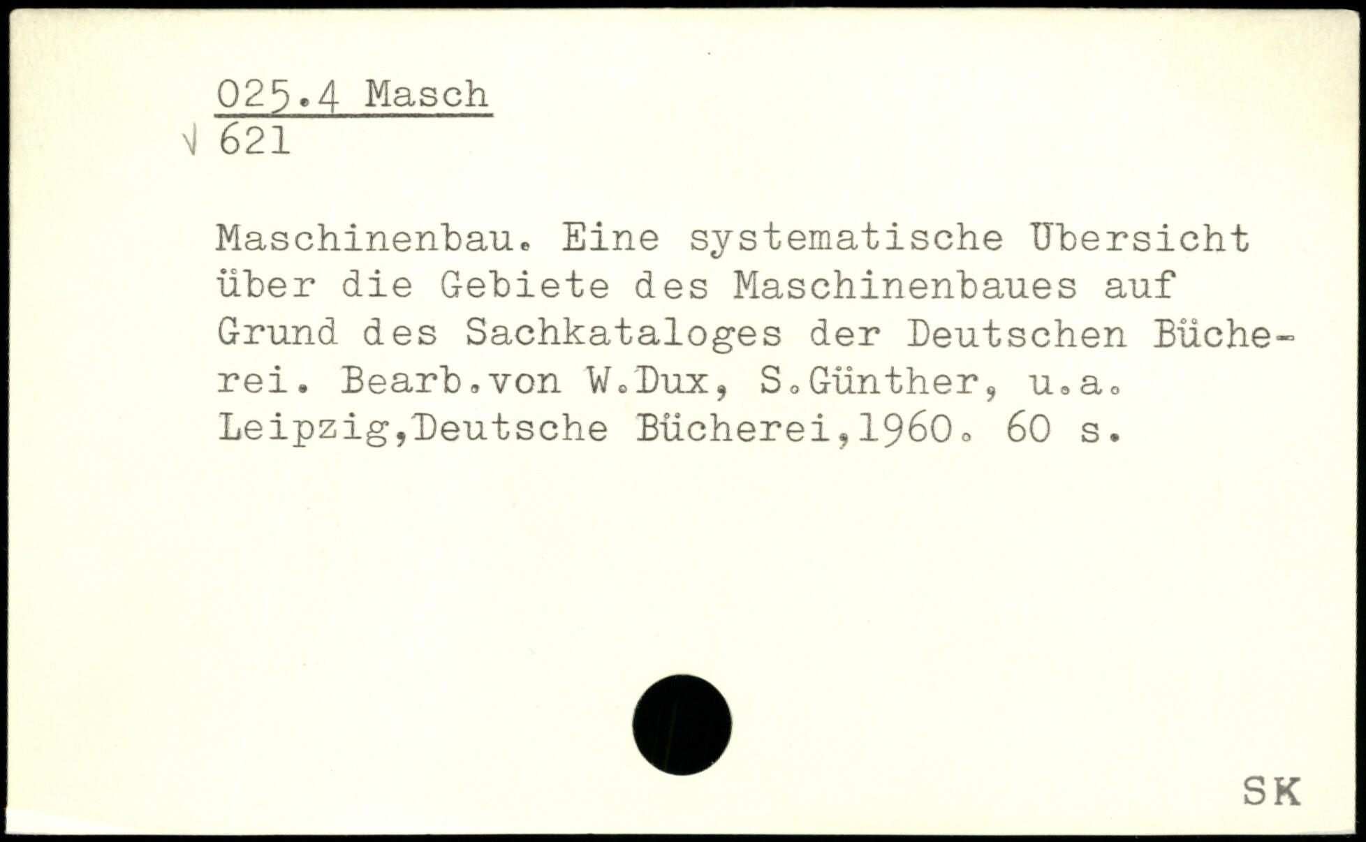 Maschinenbau. Eine systematische Übersicht über die Gebiete des Maschinenbaues auf Grund des Sachkataloges der Deutschen Bücherei. Bearb.von W.Dux, SoGünther, u.a.