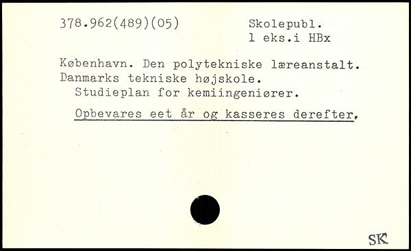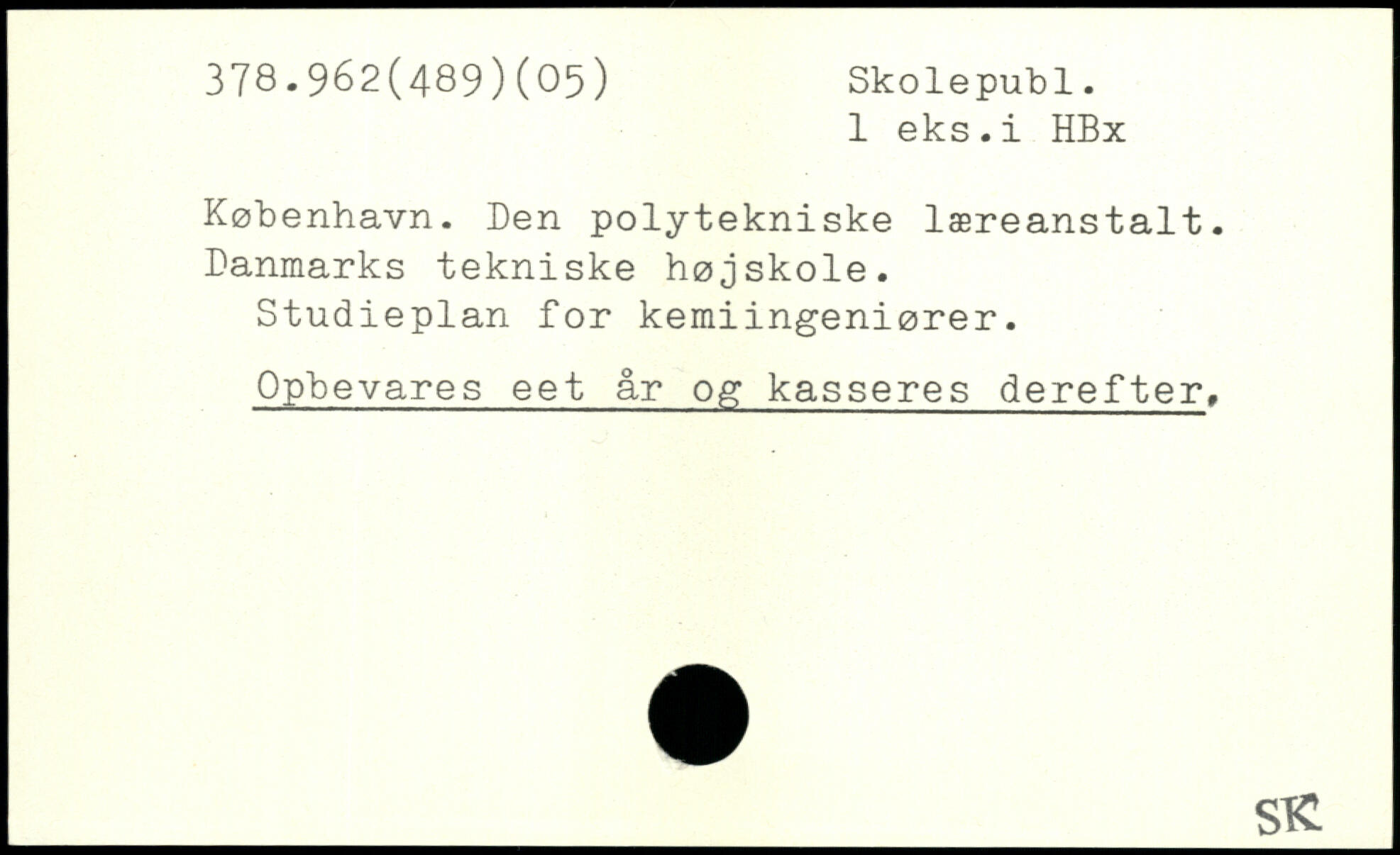København. Den polytekniske læreanstalt. Danmarks tekniske højskole. Studieplan for kemiingeniører. Opbevares eet år og kasseres derefter