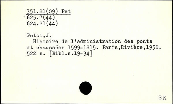 Histoire de l'administration des ponts et chaussées 1599-1815. Paris,Rivière,1958.