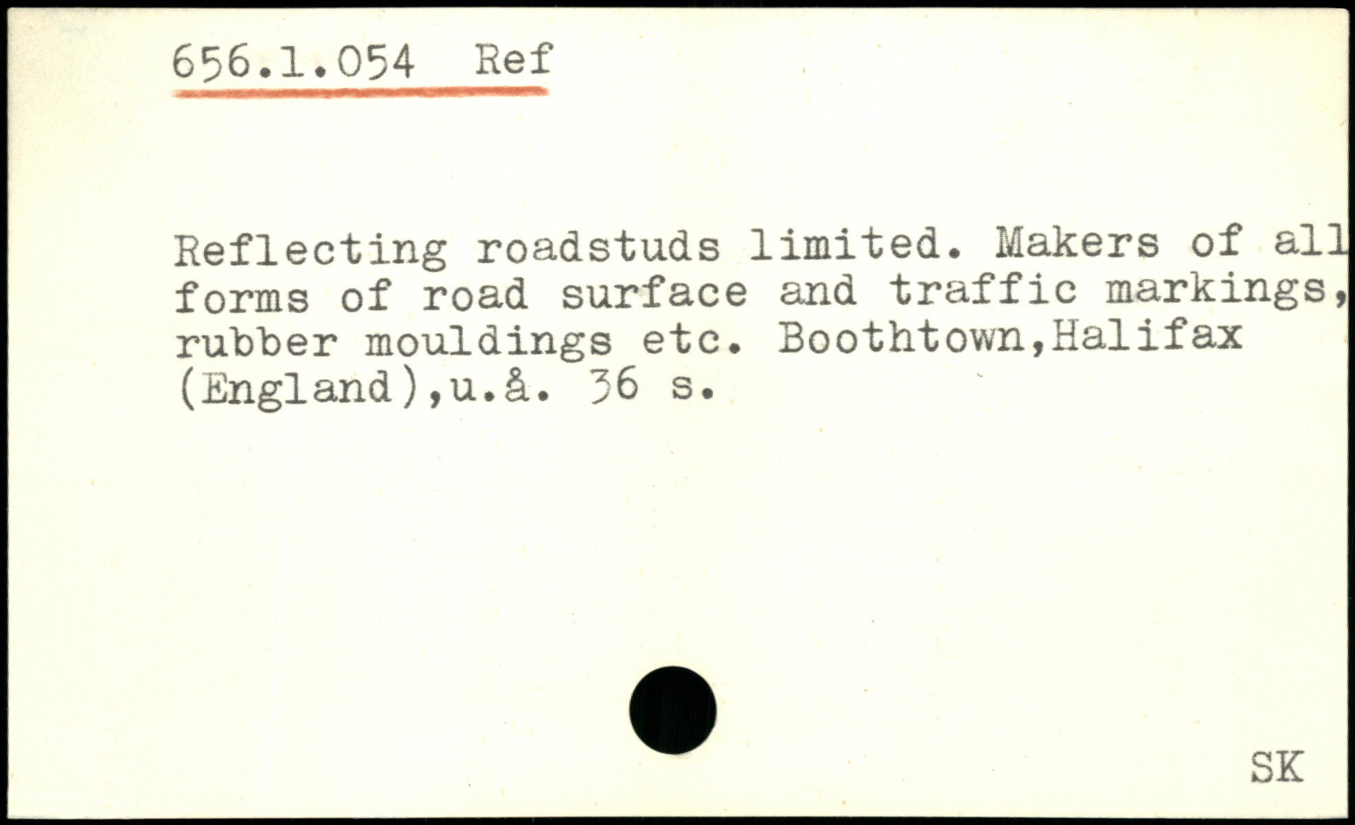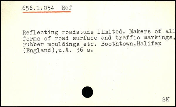 Reflecting roadstuds limited. Makers of all forms of road surface and traffic markings, rubber mouldings etc. Boothtown,Halifax (England),u.&.