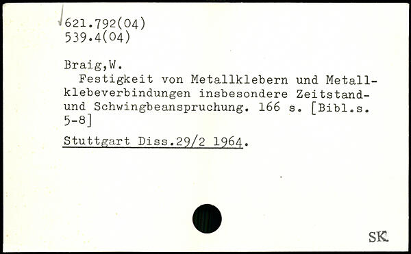 Festigkeit von Metallklebern und Metall-klebeVerbindungen insbesondere Zeitstand-und Schwingbeanspruchung.