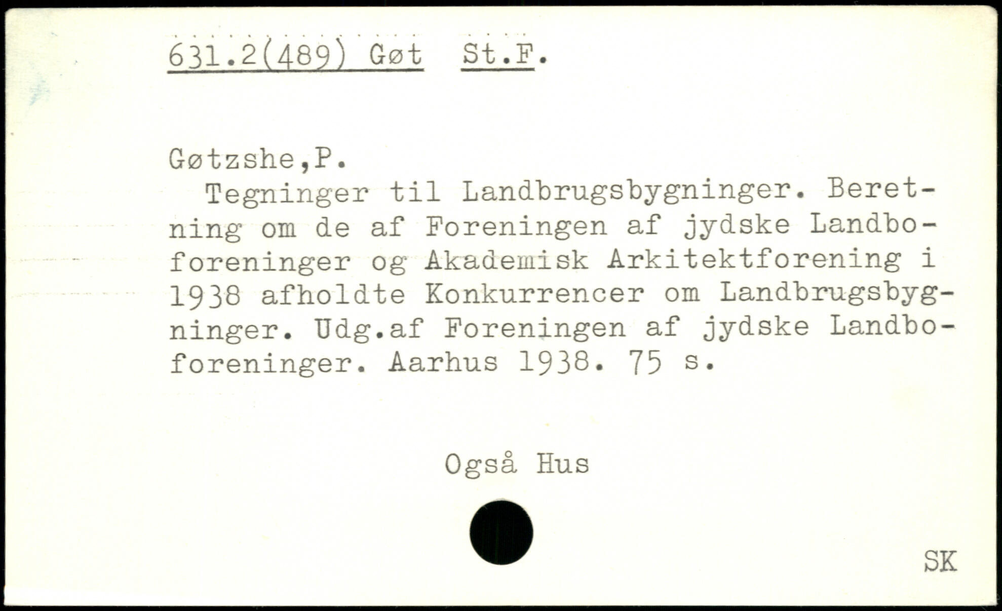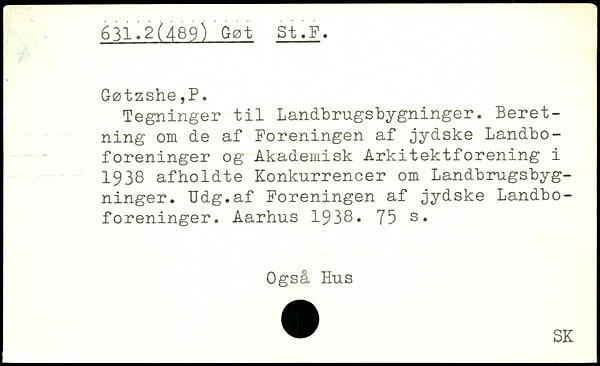 Tegninger til Landbrugsbygninger. Beretning om de af Foreningen af jydske Landboforeninger og Akademisk Arkitektforening i 1938 afholdte Konkurrencer om Landbrugsbygninger. Udg.af Foreningen af jydske Landboforeninger.