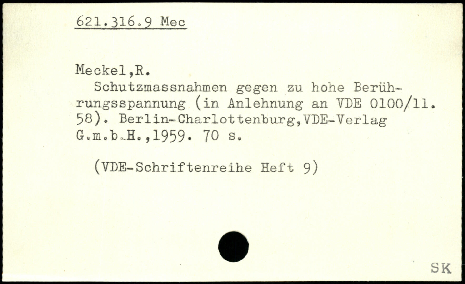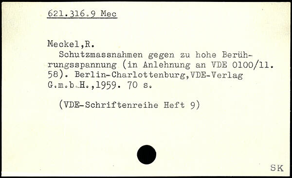 Schutzmassnahmen gegen zu hohe Berührungsspannung (in Anlehnung an VDE 0100/ll. 58). Berlin-Charlottenburg,VDE-Verlag G.nub JL ,1959