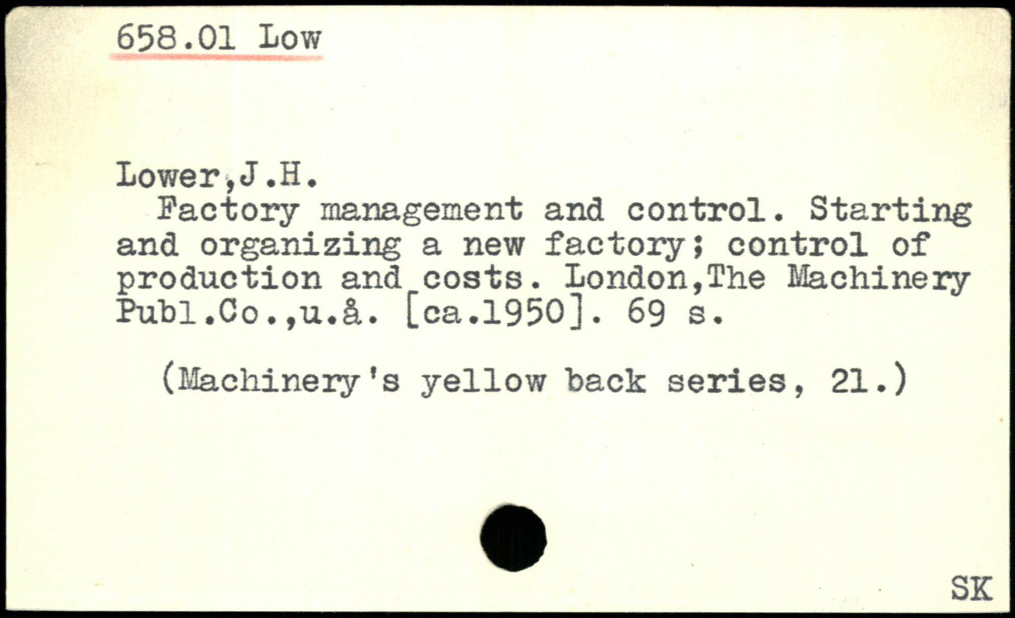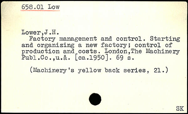 Factory management and control. Starting and organizing a new factory; control of production and costs. London,The Machinery Publ.Co.,u.â.