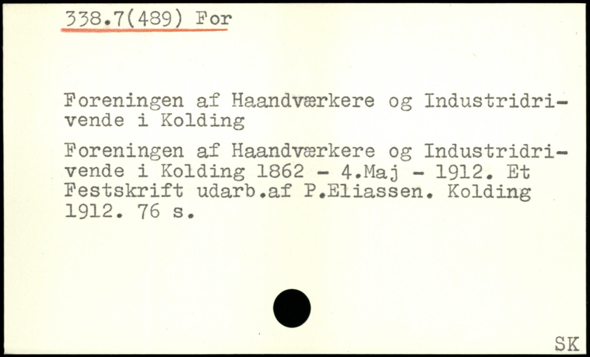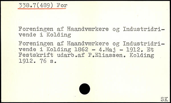 Foreningen af Haandværkere og Industridrivende i Kolding Foreningen af Haandværkere og Industridrivende i Kolding 1862 - 4.Maj - 1912. Et Festskrift udarb.af P.Eliassen. Kolding 1912.