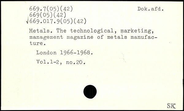 Metals. The technological, marketing, management magazine of metals manufacture.
