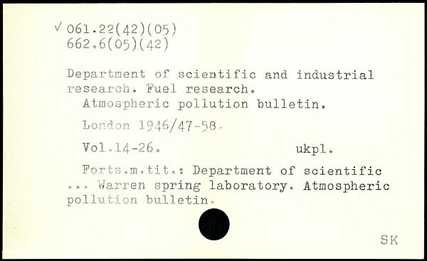 Department of scientific and industrial research. Fuel research. Atmospheric pollution bulletin.