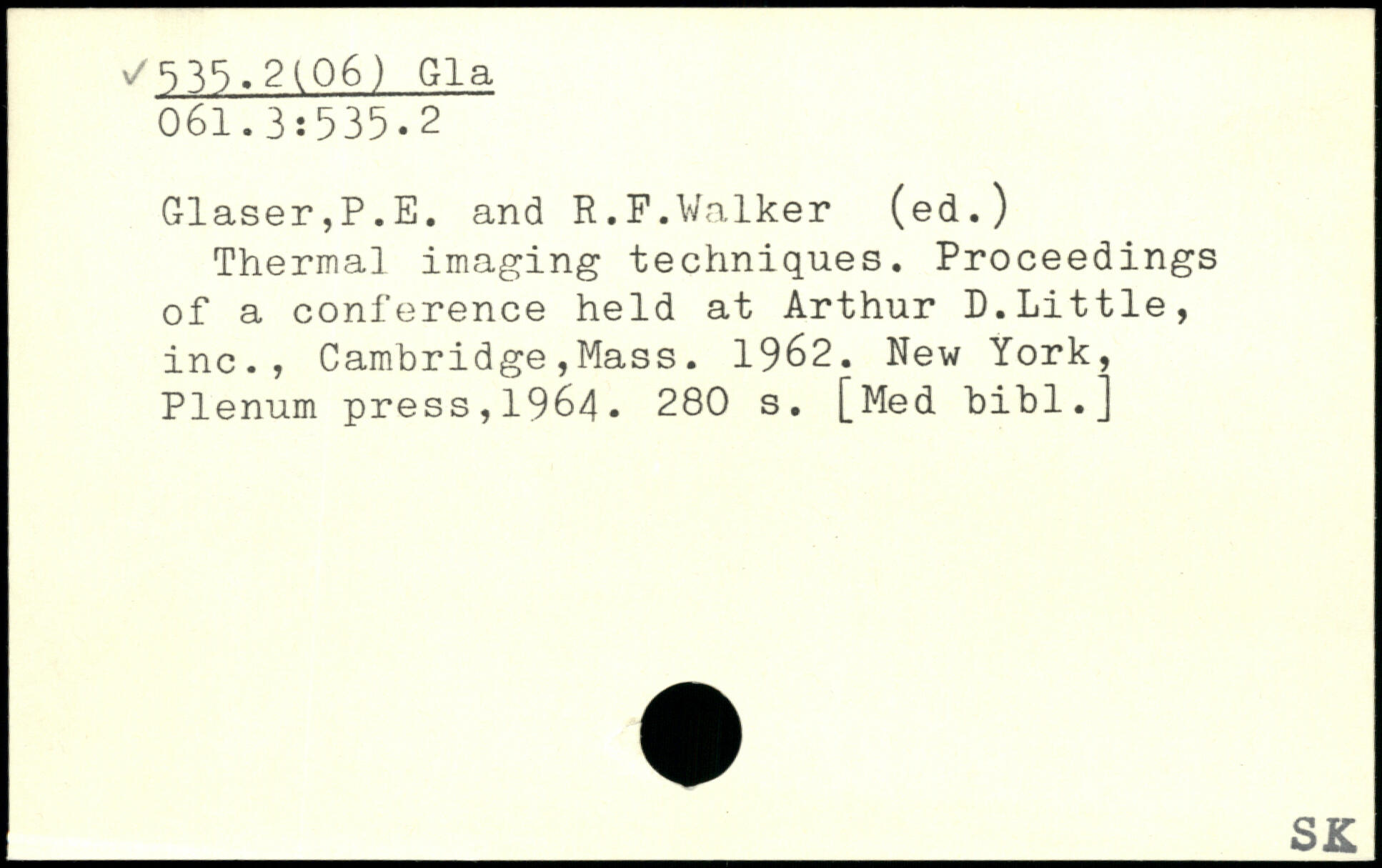 Thermal imaging techniques. Proceedings of a conference held at Arthur D.Little, inc., Cambridge,Mass. 1962.