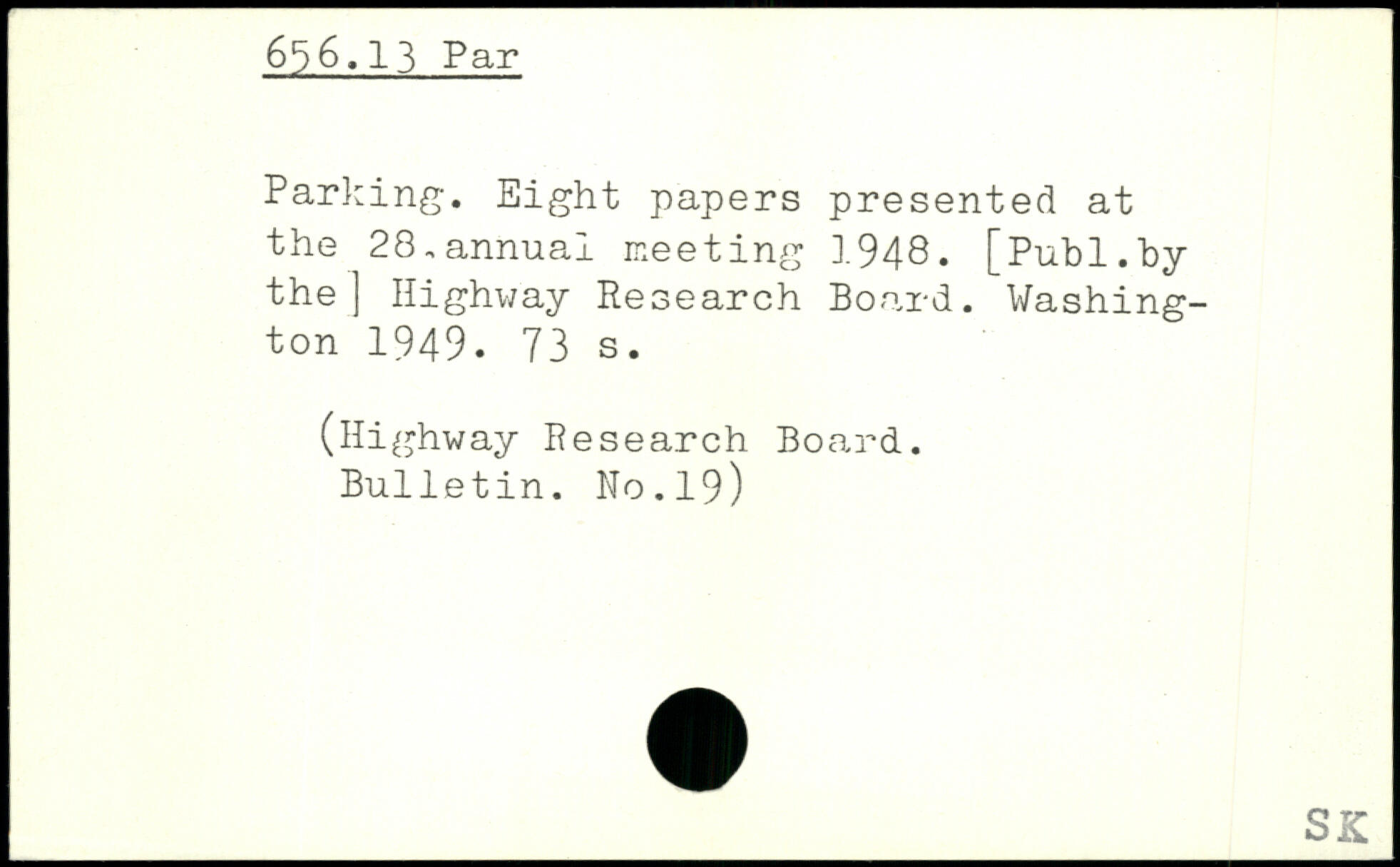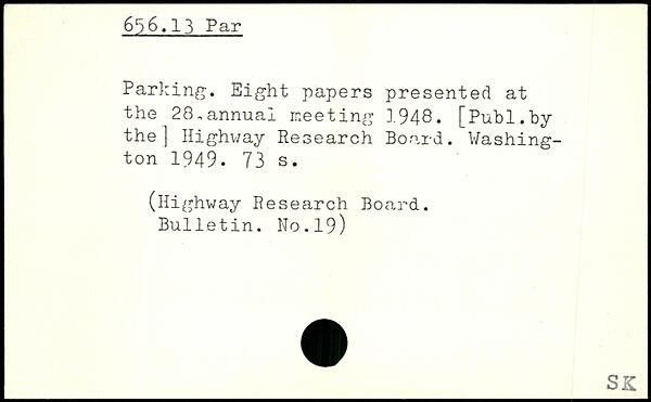 Parking. Eight papers presented at the 28,annual meeting 1948.