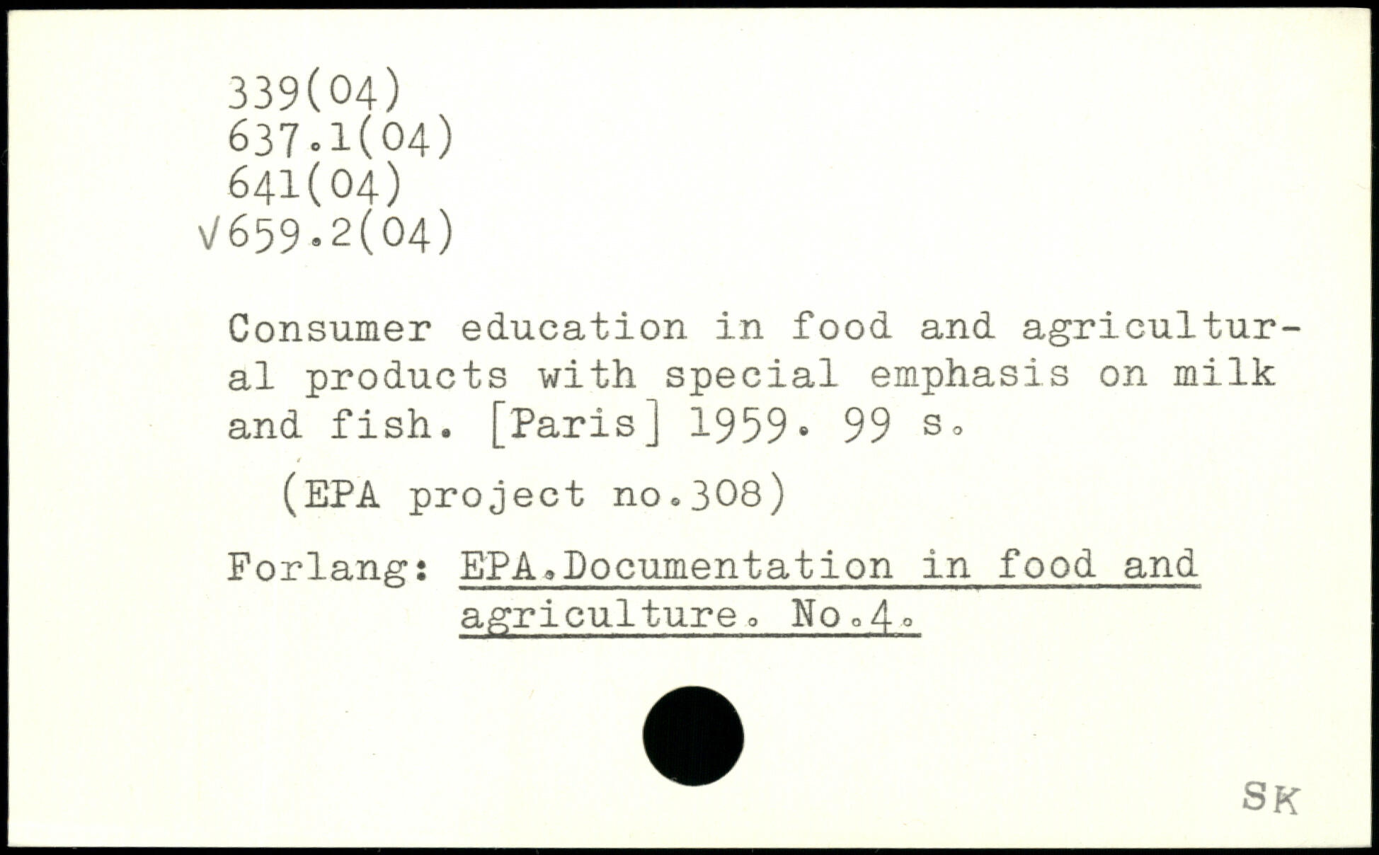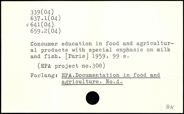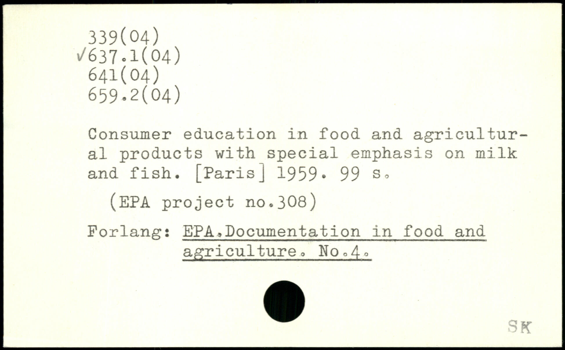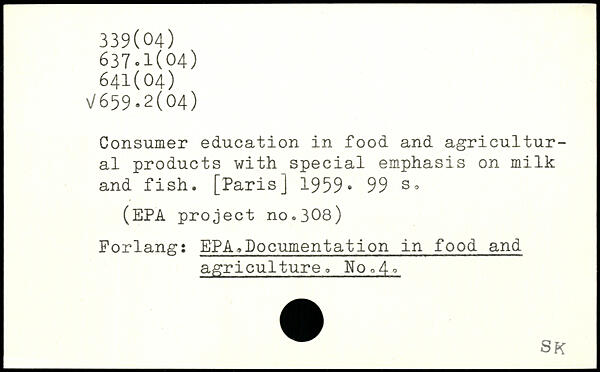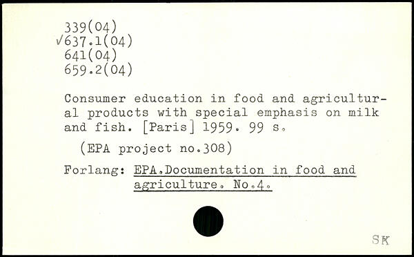 Consumer education in food and agricultural products with special emphasis on milk and fish.