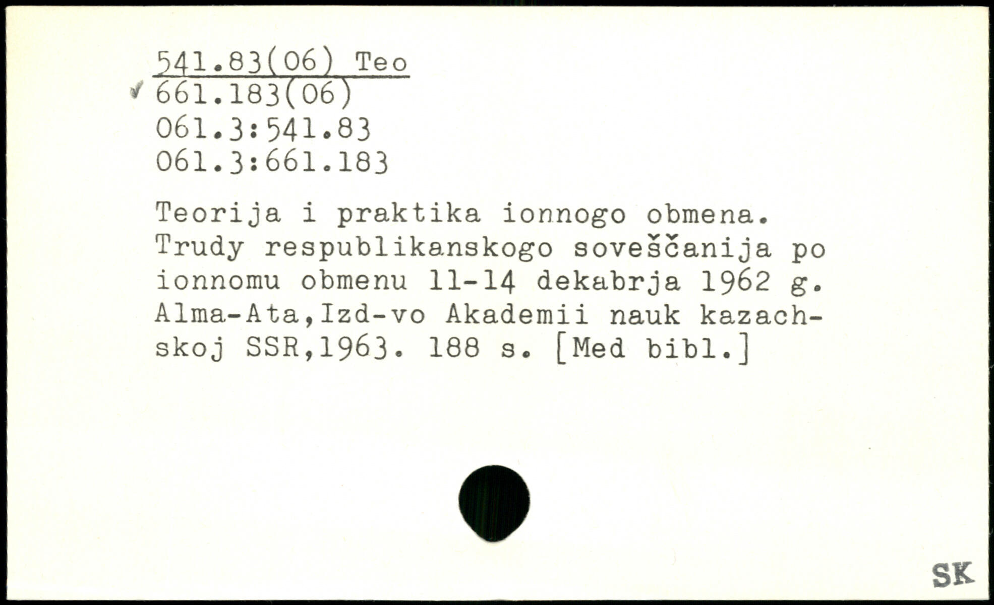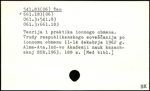 Teorija i praktika ionnogo obmena. Trudy respublikanskogo sovescanija po ionnomu obmenu 11-14 dekabrja 1962 g. Alma-Ata,Izd-vo Akademii nauk kazach-skoj SSR,1963.