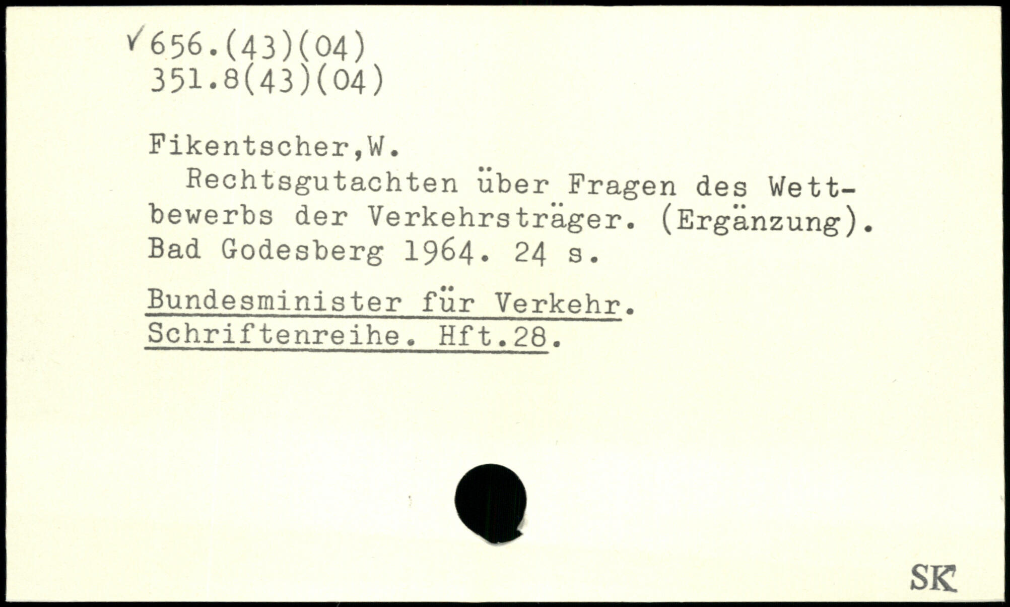 Rechtsgutachten über Fragen des Wettbewerbs der Verkehrsträger. (Ergänzung). Bad Godesberg 1964