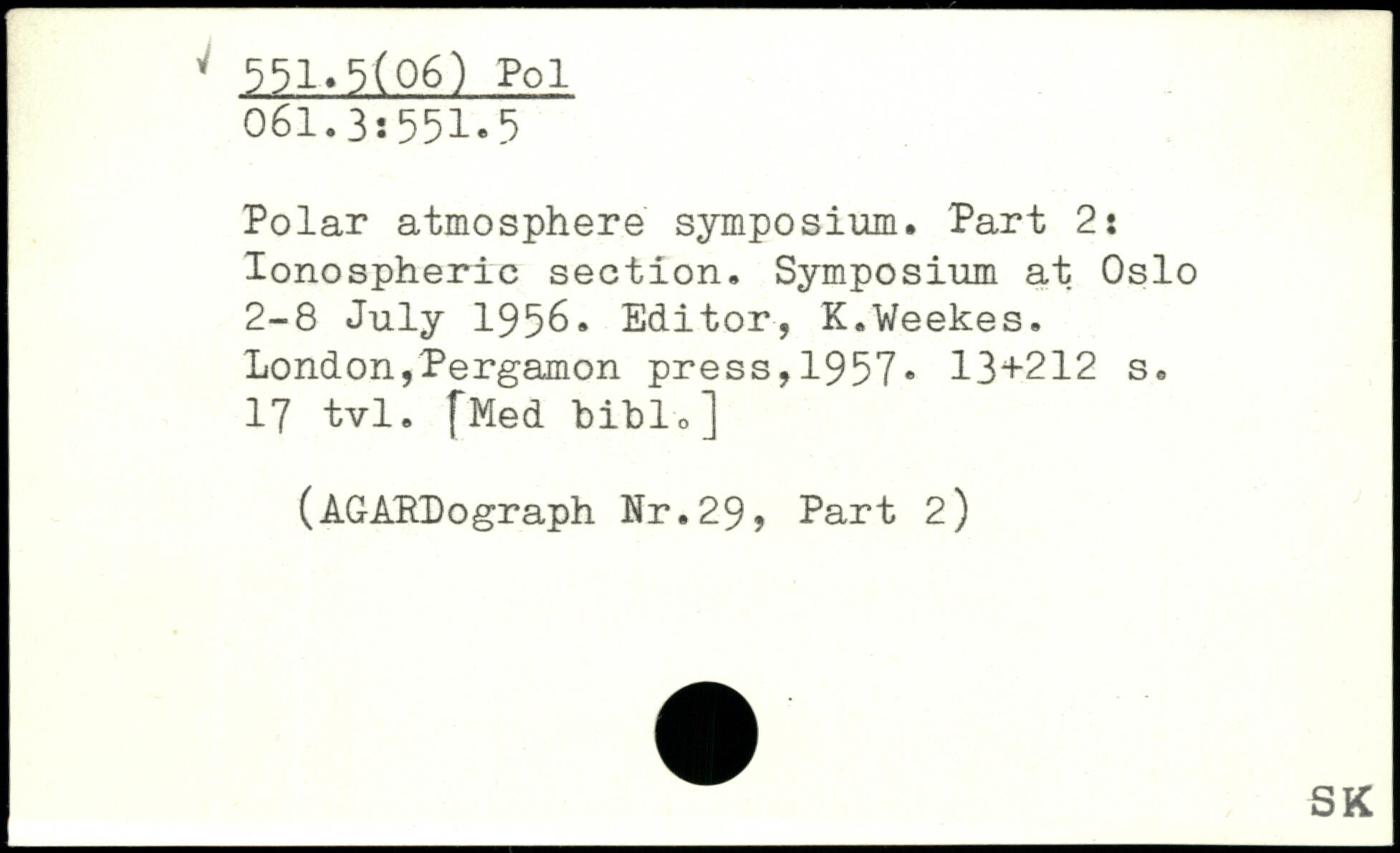 Polar atmosphere symposium. Part 2: Ionospheric section. Symposium at Oslo 2-8 July 1956. Editor, K.Weekes.