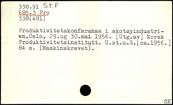 Produktivitetskonferanse i skotøyindustri-en,Oslo, 29.og 30.mal 1956.