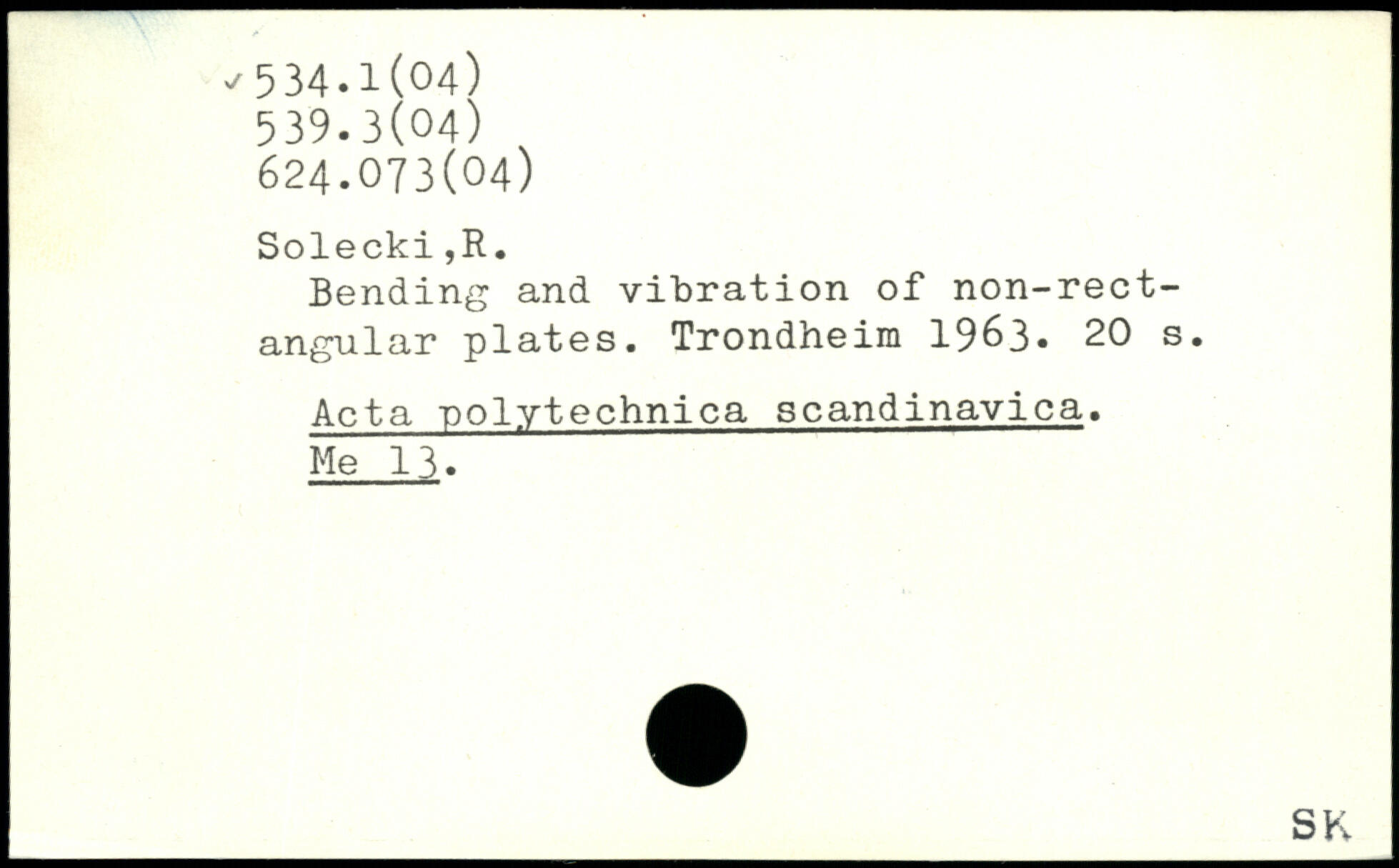 Bending and vibration of non-rect-angular plates. Trondheim 19&3.