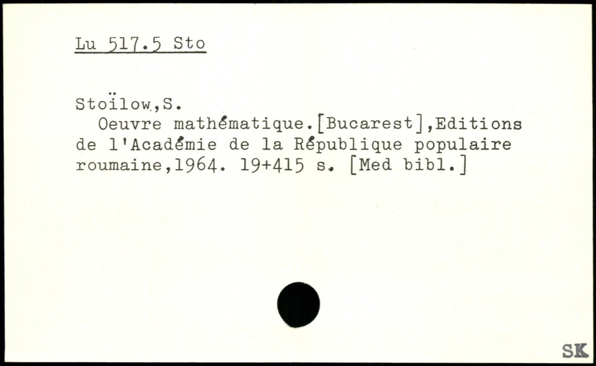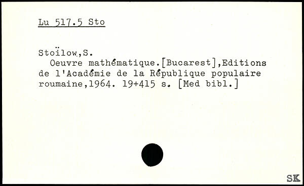 Oeuvre mathématique.[Bucarest],Editions de l'Académie de la République populaire roumaine,1964.