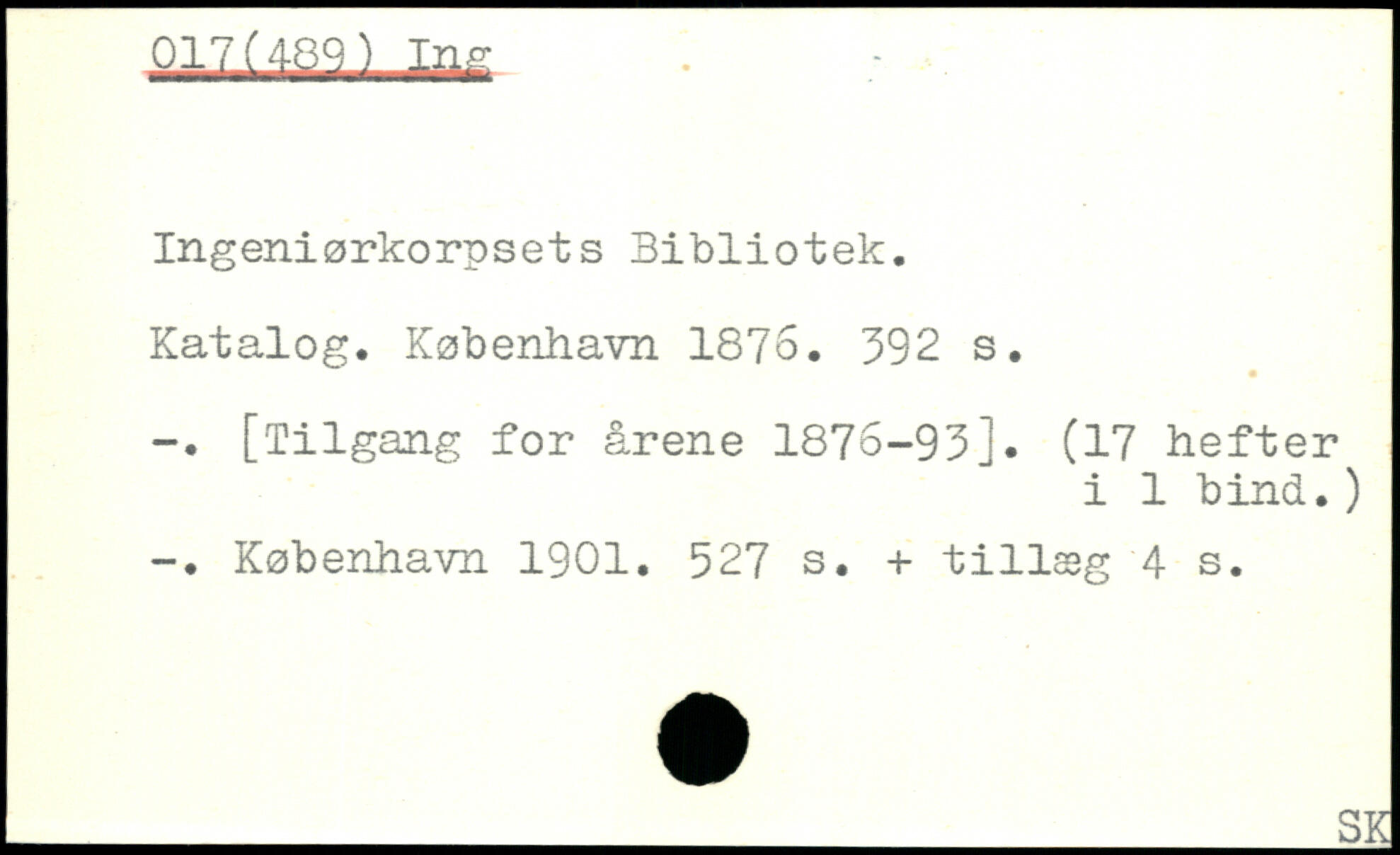 Ingeniørkorpsets Bibliotek. Katalog.
