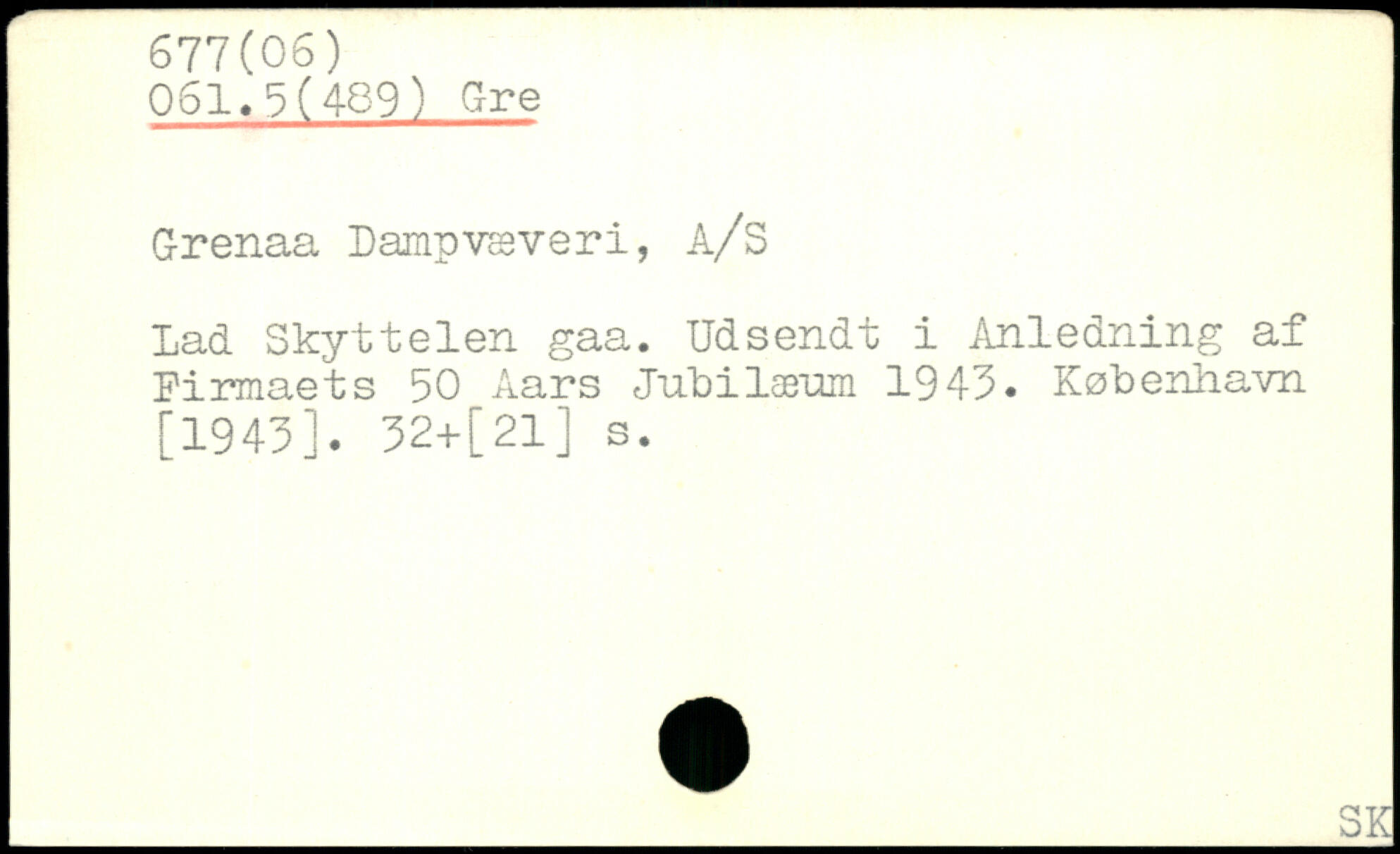 Lad Skyttelen gaa. Udsendt i Anledning af Firmaets 50 Aars Jubilæum 1943.