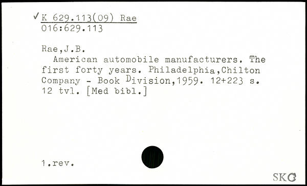American automobile manufacturers. The first forty years. Philadelphia,Chilton Company - Book ^ivision,1959.