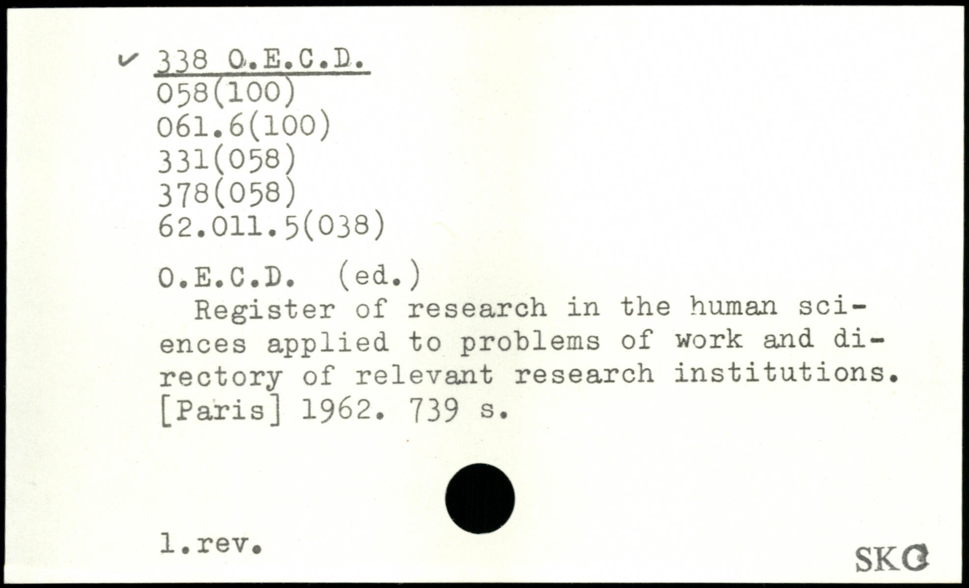Register of research in the human sciences applied to problems of work and di-rectory of relevant research institutions.