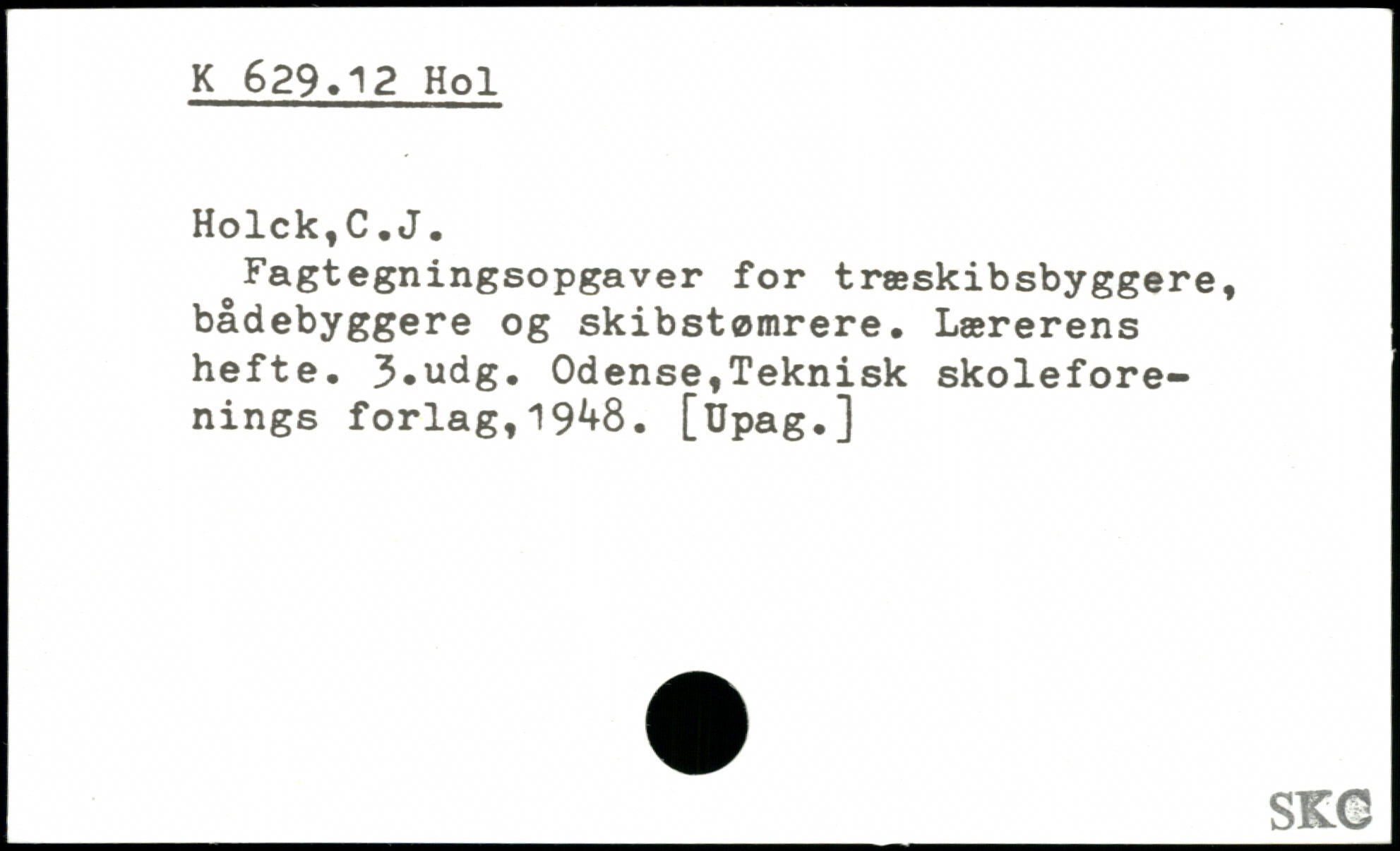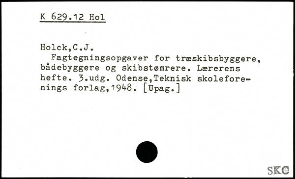 Fagtegningsopgaver for træskibsbyggere, bådebyggere og skibstømrere. Lærerens hefte, 3,udg, Odense,Teknisk skoleforenings forlag,19^8. [Upag.]