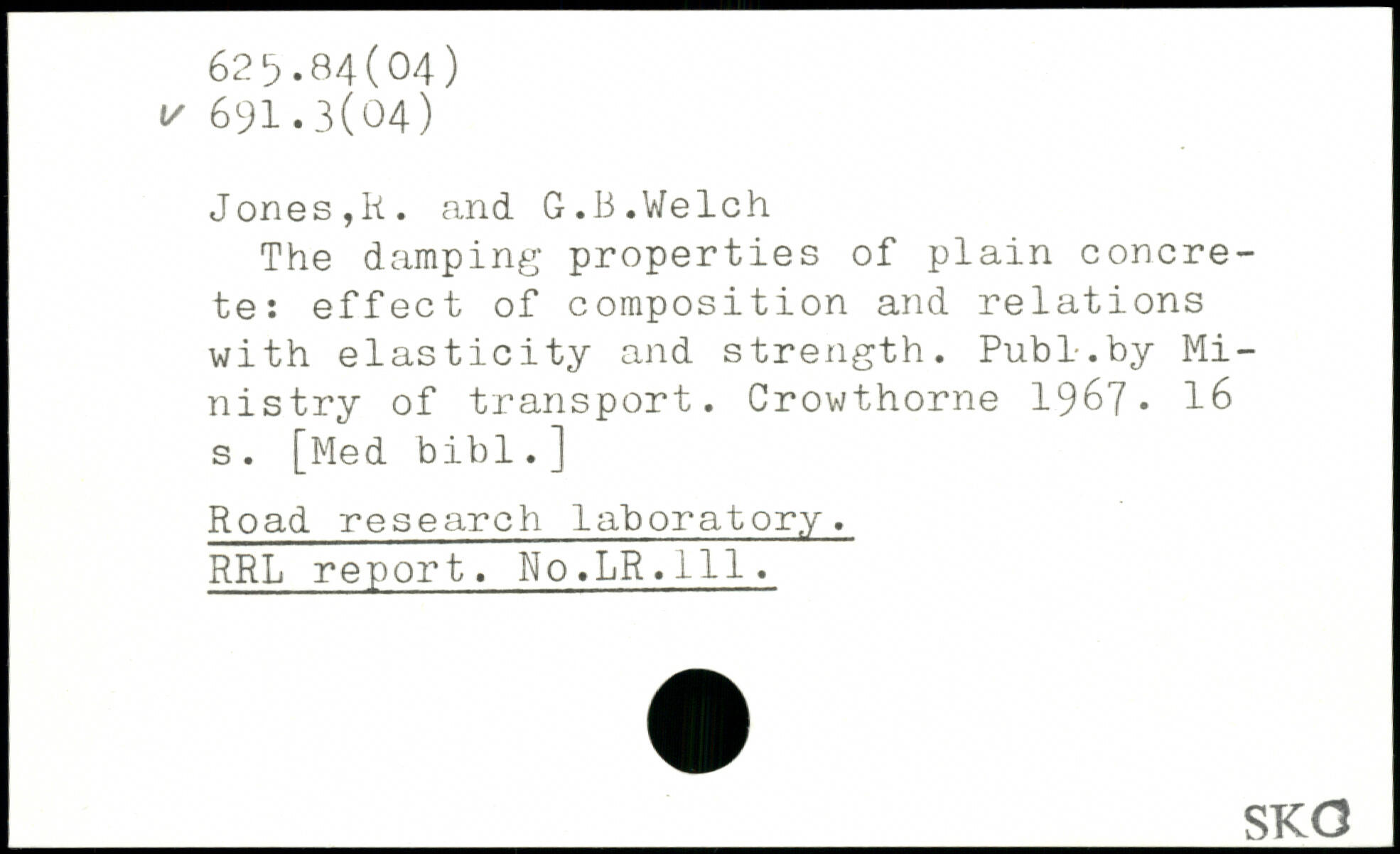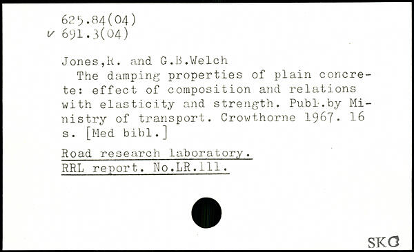 The damping properties of plain concrete: effect of composition and relations with elasticity and strength. Pub 1..by Ministry of transport. Crowthorne 1967.