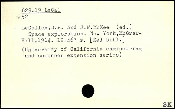 LeGalley,D.P. and J.W.McKee (ed.) Space exploration.