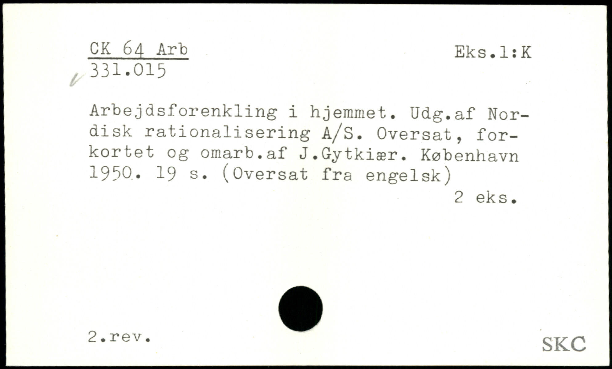 Arbejdsforenkling i hjemmet. Udg.af Nordisk rationalisering A/S. Oversat, forkortet og omarb.af J.Gytkiær.