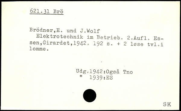 BrÖdner,E, und J.Wolf Elektrotechnik im Betriebe
