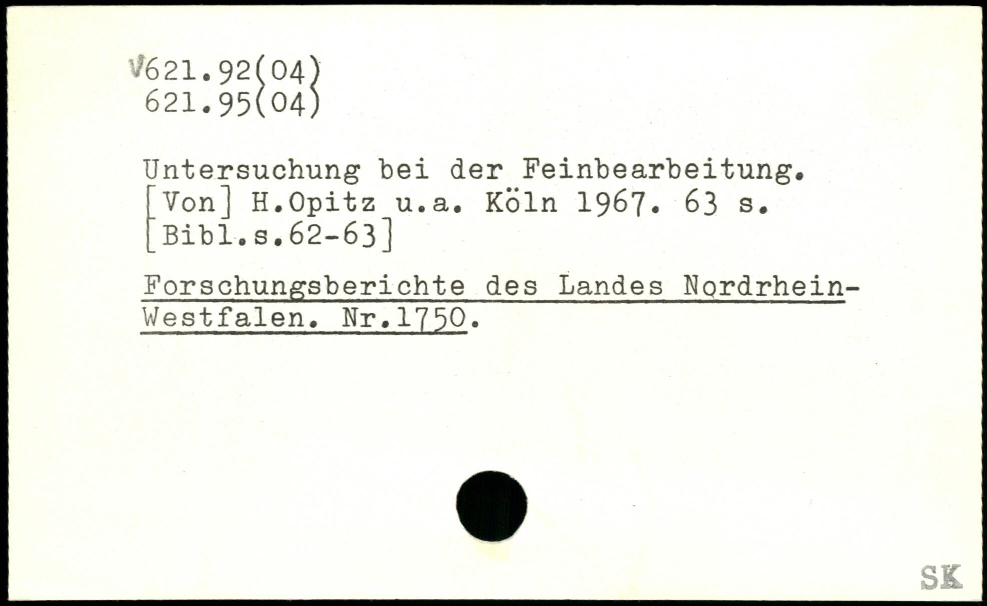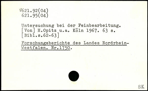 Untersuchung bei der Feinbearbeitung. Von] H.Opitz u.a.