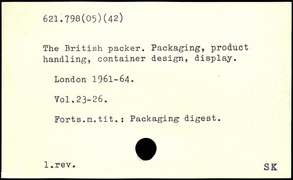 The British packer. Packaging, product handling, container design, display.