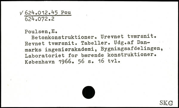 Betonkonstruktioner. Urevnet tværsnit. Revnet tværsnit. Tabeller. Udg.af Danmarks ingeniørakademi, Bygningsafdelingen, Laboratoriet for bærende konstruktioner. København 19^6.