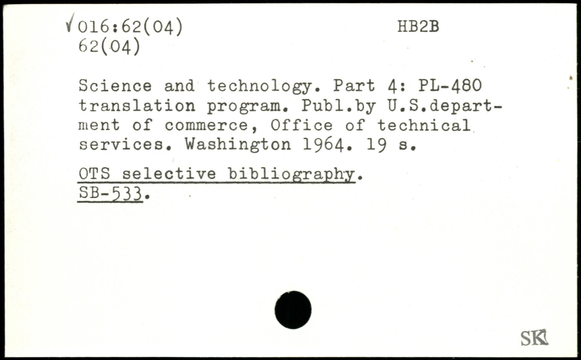 Science and technology. Part 4: PL-480 translation program.