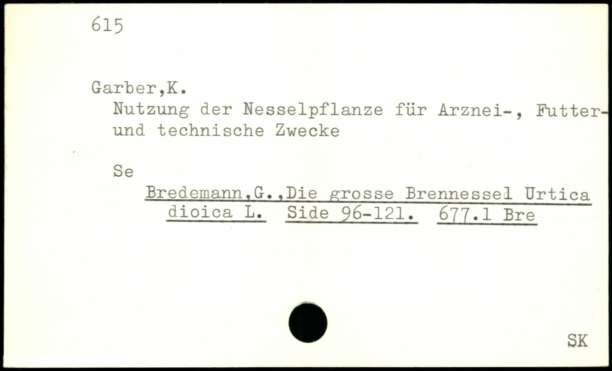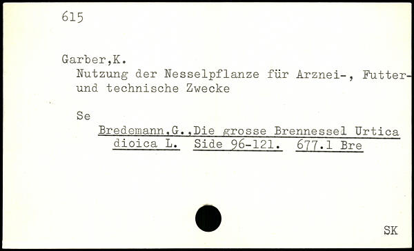 Nutzung der Nesselpflanze für Arznei-, Futter-und technische Zwecke Se Bredemann.G.,Die grosse Brennessel Urtica dioica L. Side 96-121. 677.1 Bre