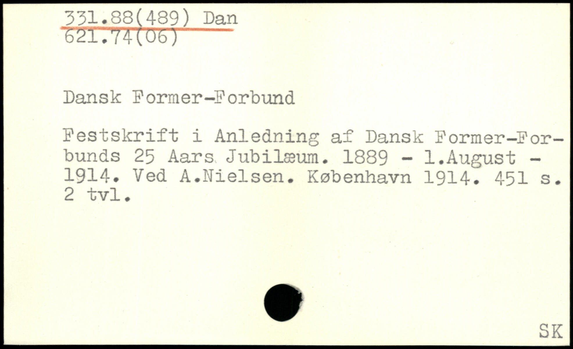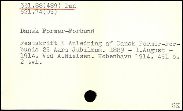 ^grrrørofe)- Dansk Former-Forbund Festskrift i Anledning af Dansk Former-Forbunds 25 Aars Jubilæum. 1889 - 1.August -1914. Ved A.Nielsen.