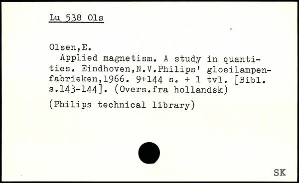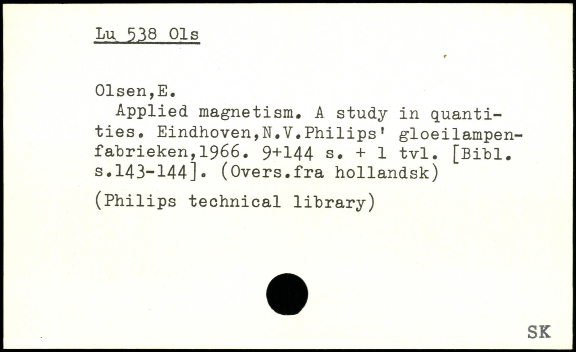 Applied magnetism. A study in quantities. Eindhoven,N.V.Philips' gloeilampen-fahrieken,1966.