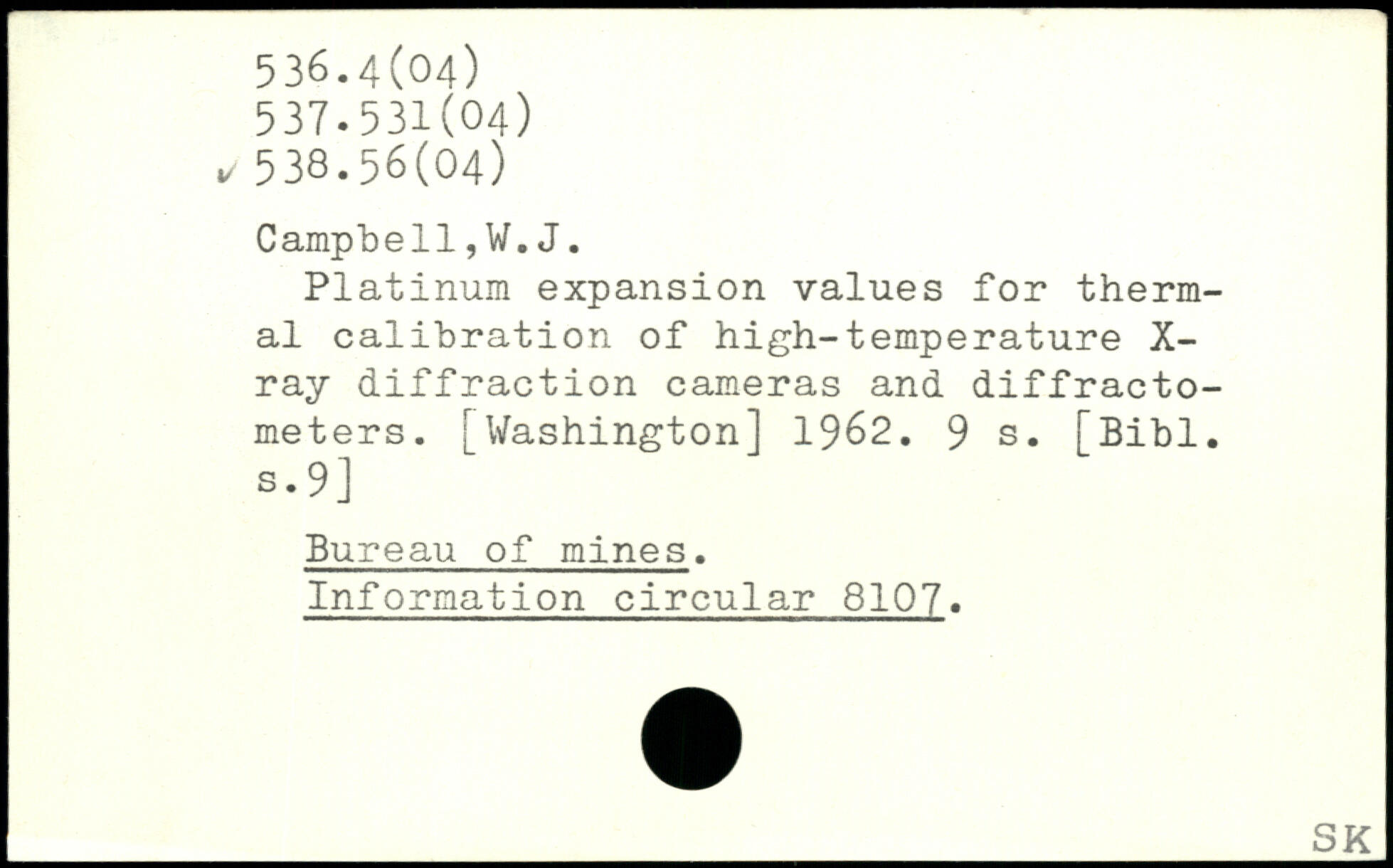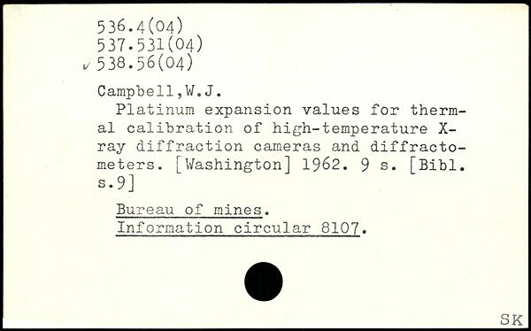 Platinum expansion values for thermal calibration of high-temperature X-ray diffraction cameras and diffractometers.