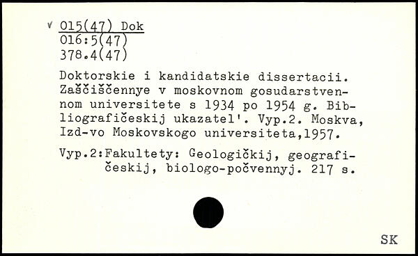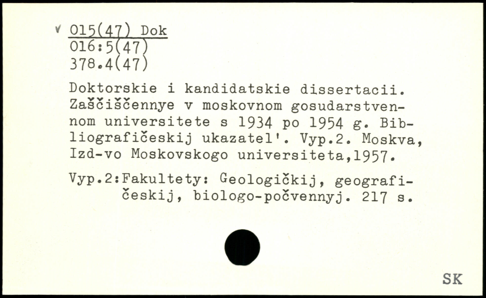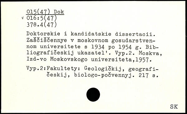 UDK: 015(47) Dok, 016:5(47), 378.4(47)