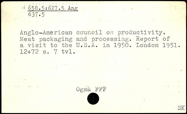 Anglo-American council on productivity. Meat packaging and processing. Report of a visit to the U.S.A. in 1950.