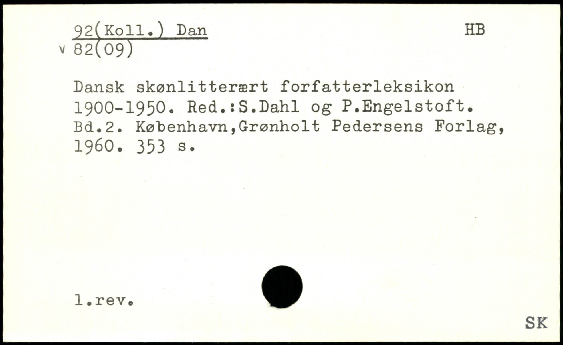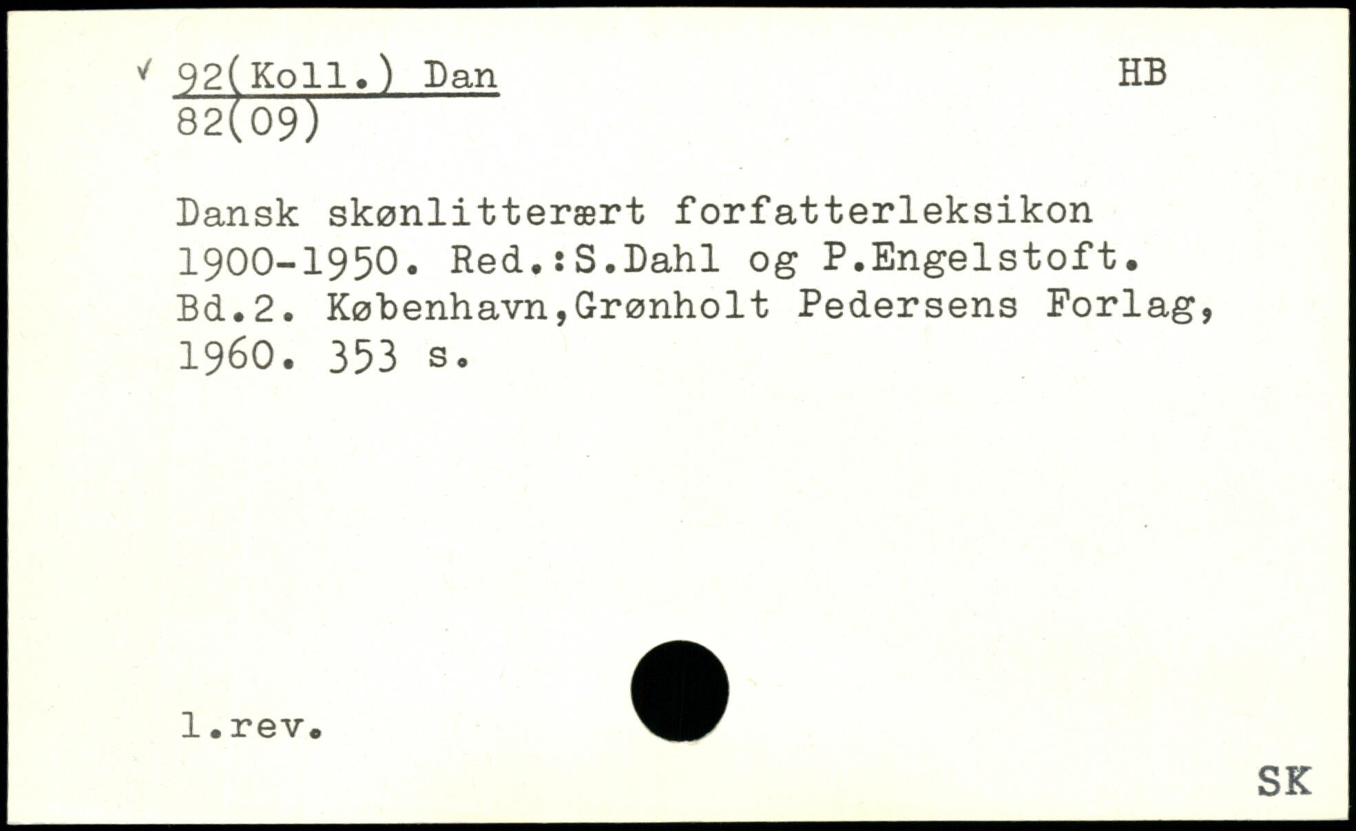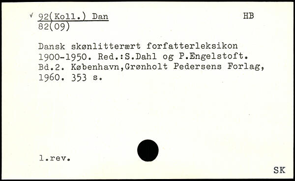 Dansk skønlitterært forfatterleksikon 1900-1950. Red.:S.Dahl og P.Engelstoft.
