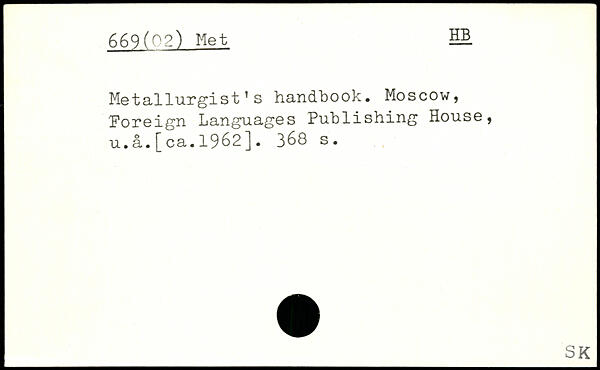 Metallurgist’s handbook. Moscow, Foreign Languages Publishing House, u.a.[ca.1962].