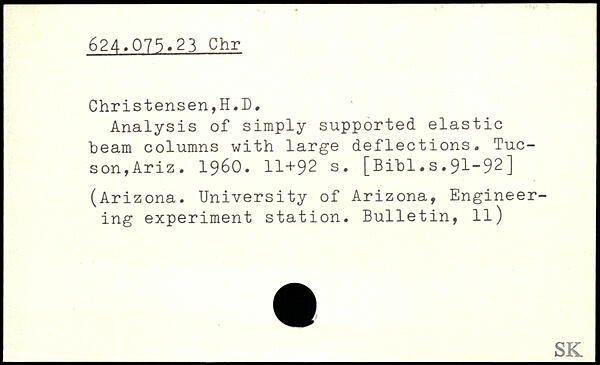 Analysis of simply supported elastic beam columns with large deflections. Tucson,Ariz. 1960. II