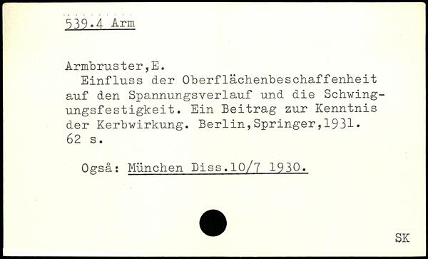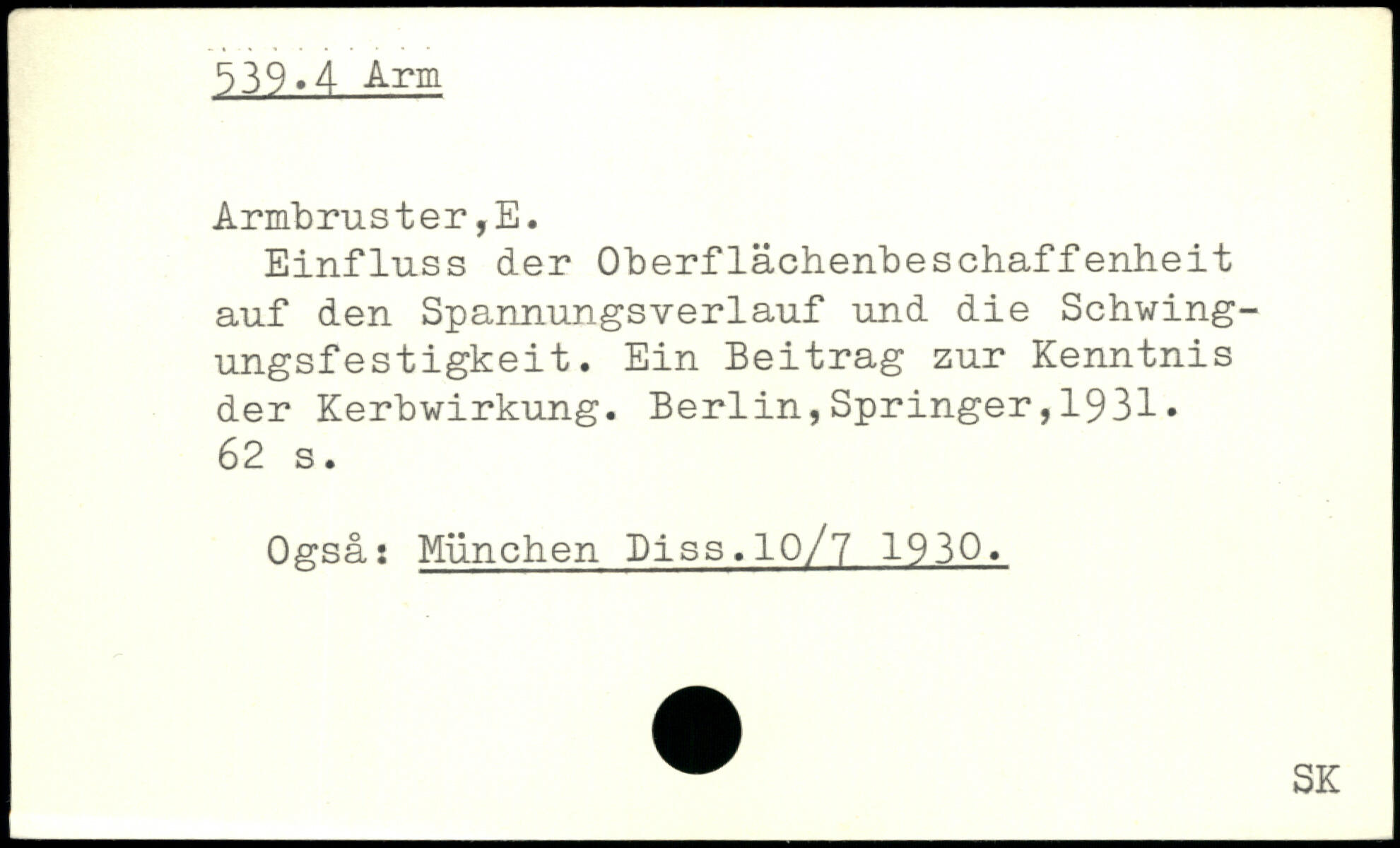Einfluss der Oberflächenbeschaffenheit auf den Spannungsverlauf und die Schwing-ungsfestigkeit. Ein Beitrag zur Kenntnis der Kerbwirkung.