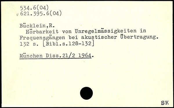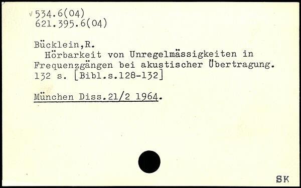 Hörbarkeit von Unregelmässigkeiten in Frequenzgängen bei akustischer Übertragung.