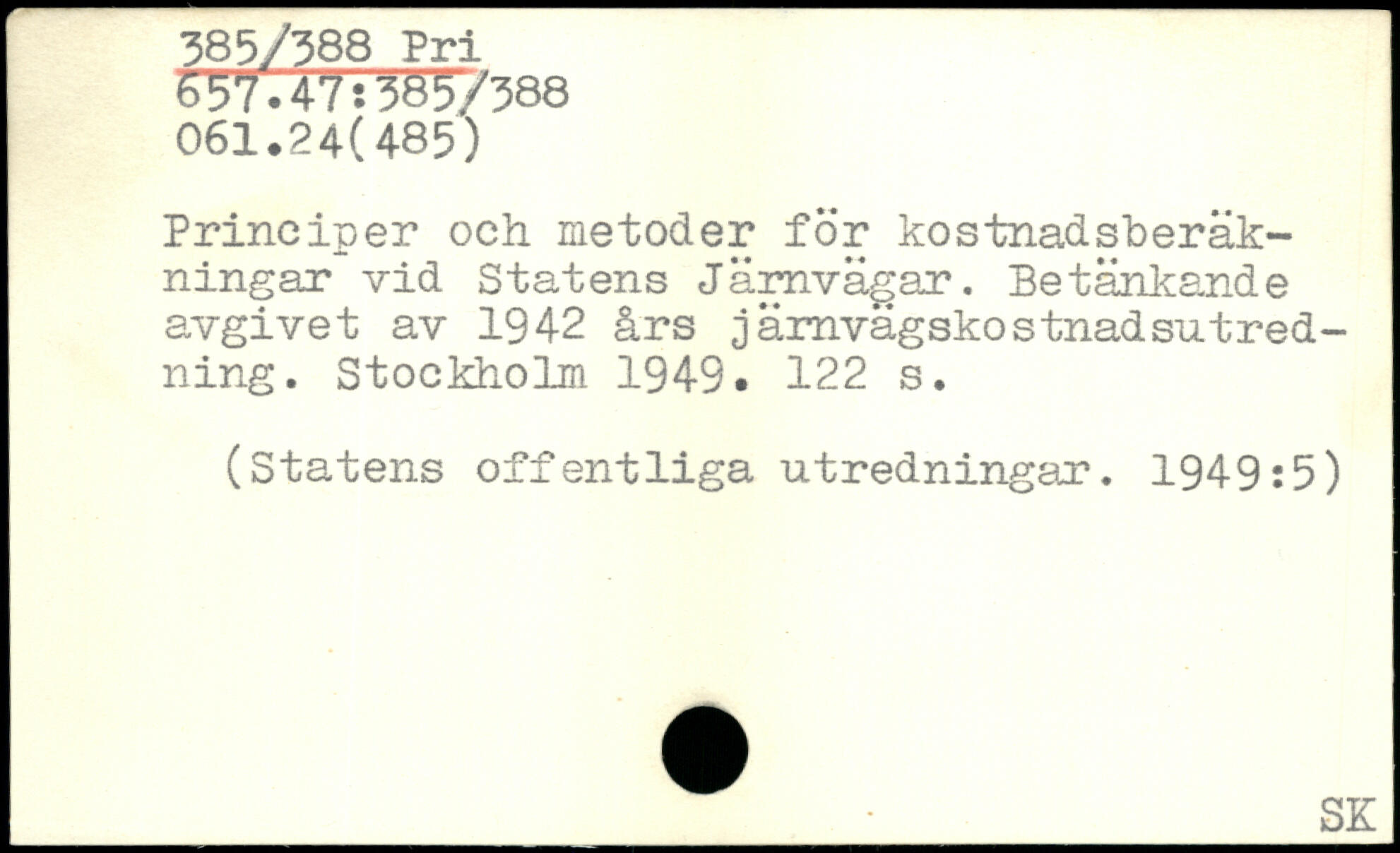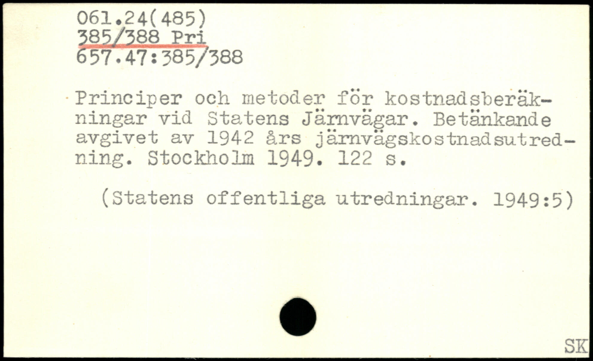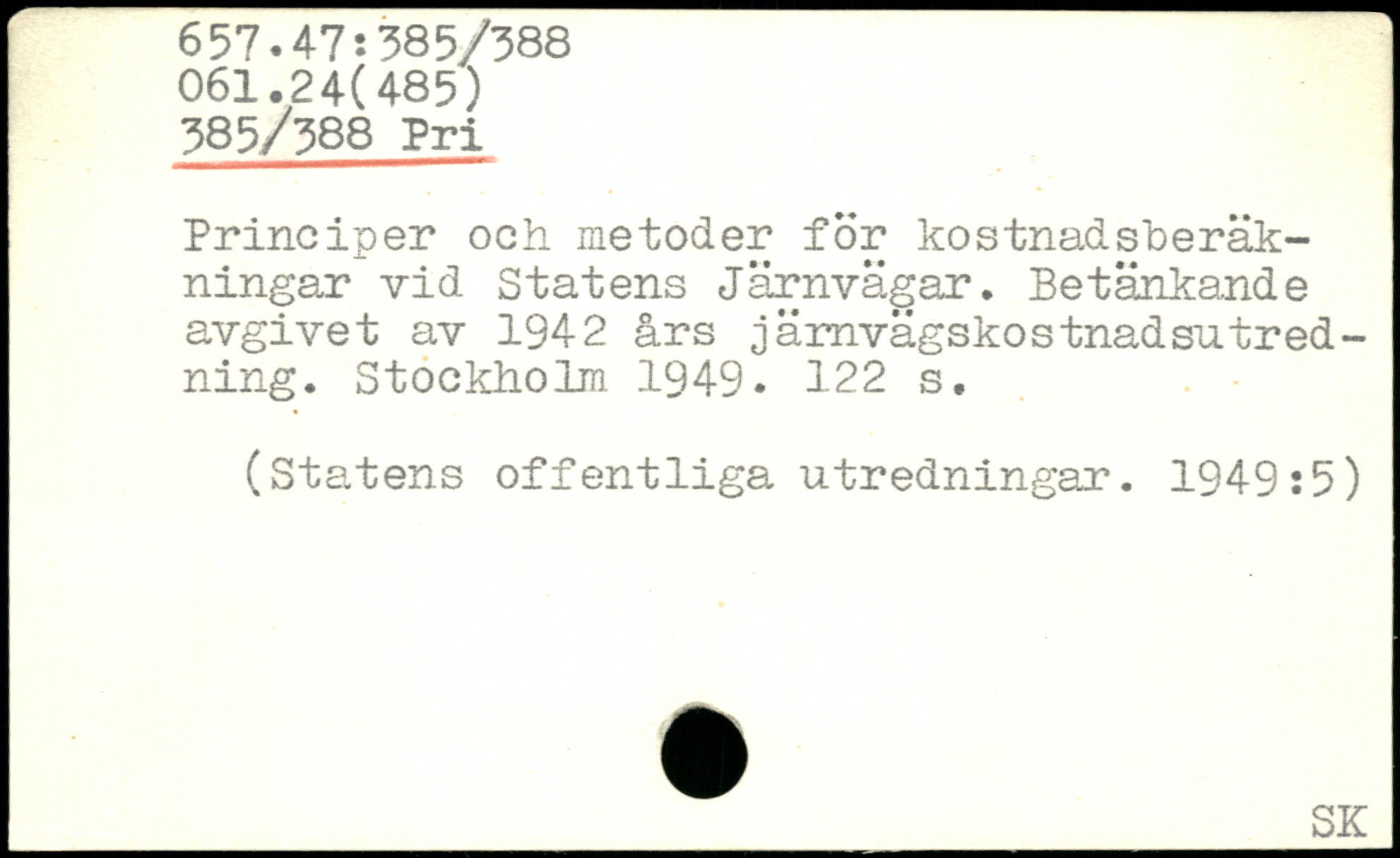 ■ Principer och metoder för kostnadsberäkningar vid Statens Järnvägar. Betänkande avgivet av 1942 års jämvägskostnadsutredning.