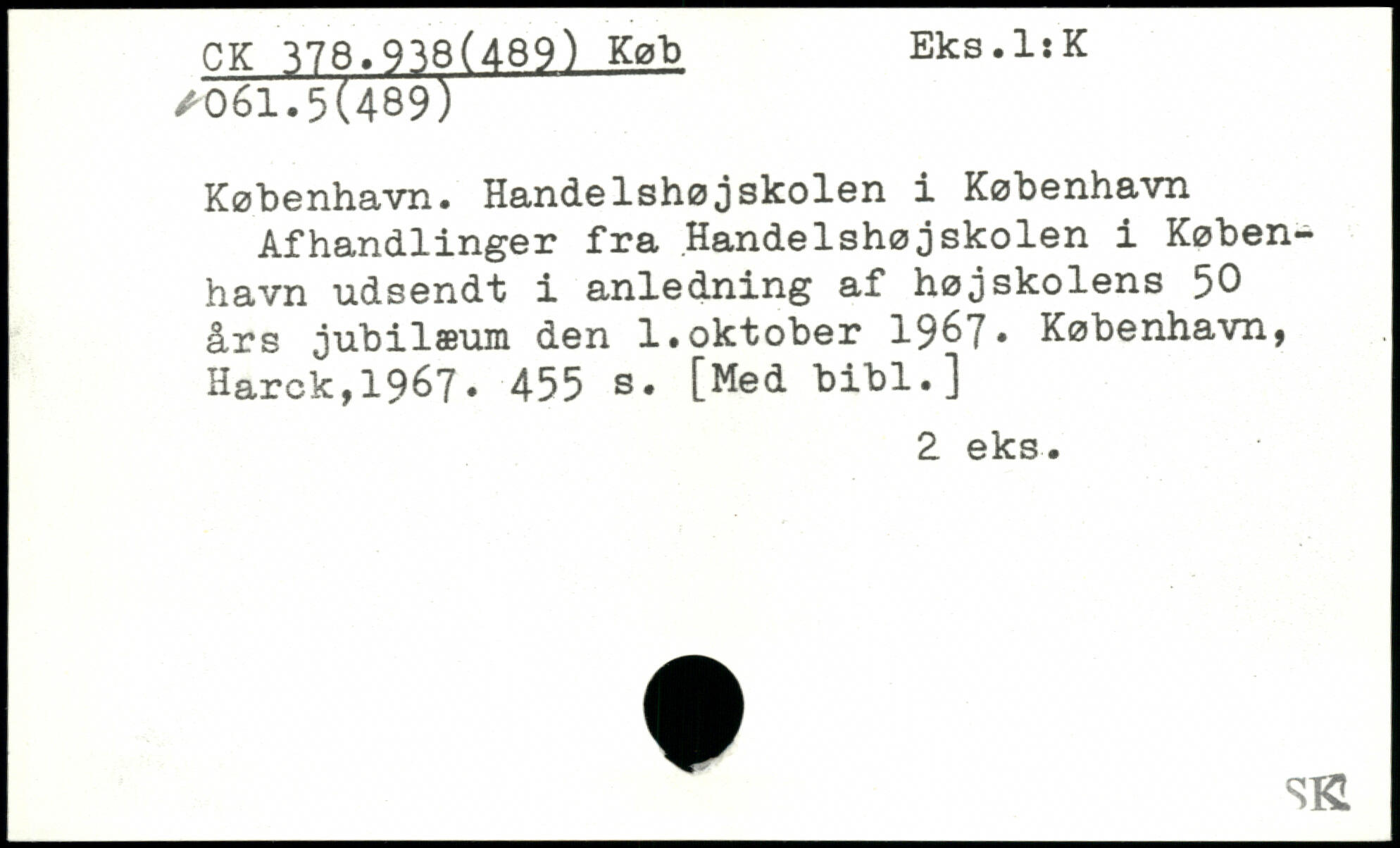 København. Handelshøjskolen i København Afhandlinger fra Handelshøjskolen i København udsendt i anledning af højskolens 50 års jubilæum den 1.oktober 1967, København, Harck,19é7.