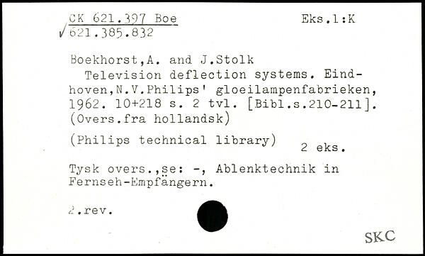 Television deflection systems. Eindhoven, N. V. Philips ' gloeilampenfabrieken, 1962.